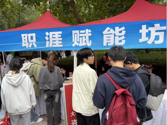 为了更好地帮助毕业生求职,活动现场设置“职涯赋能坊”专区,引入AI简历、模拟面试等实用工具,为毕业生提供简历诊断、面试技巧指导等服务。专区还特邀学校创新创业学院老师现场为学生提供指导咨询服务,助力学生求职就业。