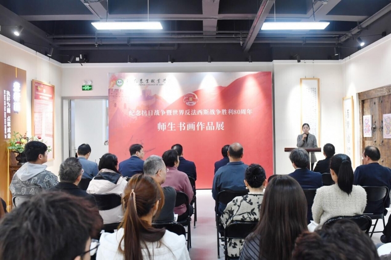 高延玲在开幕式上致辞,她指出,抗日战争的伟大胜利是中华民族走向复兴的重要转折点,举办此次书画展,既是对历史的深切缅怀,也是对师生进行爱国主义教育的重要载体。希望全体师生通过书画作品感受革命先辈的家国情怀,将爱国精神融入学习与工作,以实际行动传承红色血脉,为农业职业教育发展和乡村振兴事业贡献力量。