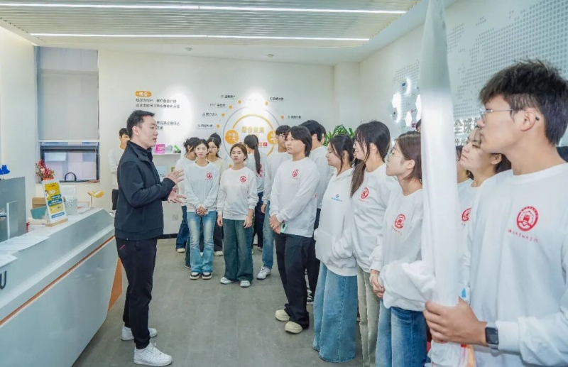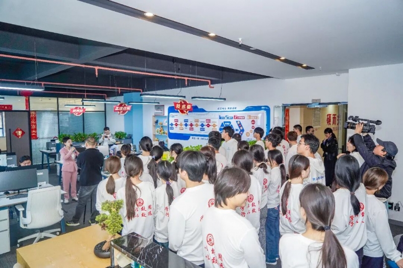 日辰集团始是一家总部位于洛阳,业务覆盖中国、日本、美国、澳大利亚多个国家,拥有小红书、抖音、知乎等主流平台官方授权代理资质的电商运营及新媒体效果营销的综合互联网集团。同学们走进直播间,深入了解公司从传统广告转型数字经济,用“算法+创意”重构商业的深层逻辑,亲身感受传统产业转型升级中的青年力量和新鲜视角。