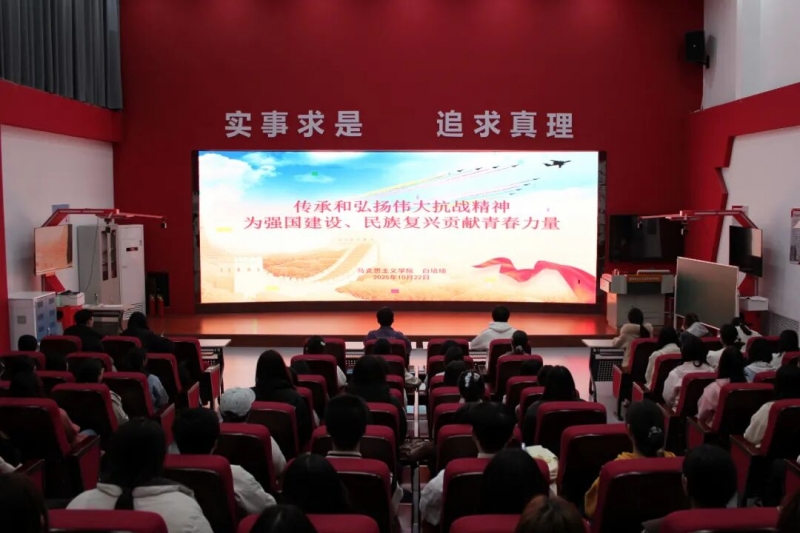 10月22日,安阳幼儿师范高等专科学校马克思主义学院党支部书记白培顼以《传承和弘扬伟大抗战精神,为强国建设、民族复兴贡献青春力量》为题,从“十四年艰苦卓绝的抗战历史回顾”“中国人民抗日战争伟大胜利的历史意义”“传承和弘扬伟大抗战精神”“新时代青年学生的历史使命与责任担当”四个方面为马克思主义学院全体学生讲了一堂主题鲜明的爱国主义思政大课。