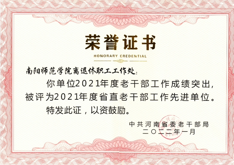 搭建文化载体,校社联动育人。学校关工委兴办“老年大学”,聘请离退休高级专业技术人员为任课教师,常年为离退休职工开设文学、国学、美学、书法、绘画、医疗保健、数智应用、声乐、舞蹈、 合唱训练 、太极拳、八段锦、模特走秀等课程。建立“教职工活动中心”,成立丰富多彩的离退休职工文化体育活动室,日常免费为离退休职工开放。总结《诗词吟咏》办刊经验,扩展更名为全省高校内刊《南师枫华》。“五老”代表聂振弢致力于传播中国传统文化,创办《作文指导报》,在国内外讲学2000余场,应邀参加联合国教科文组织“多元宗教多元文化论坛”,获评“大国良师”。刘景健教授退休20多年来一直担任“南阳市青少年爱国主义读书教育活动演讲比赛”裁判长、“南阳市‘三理’教育专家指导团”副团长、“南阳市心理学会”名誉会长、“南阳市中小学德育研究会”会长,为南阳市大中专学生、学生家长、中小学校长、班主任以及心理辅导教师作专题报告600多场,听众累计21万人次,被河南省教育厅聘为“河南省中小学教师省级培训首批专家讲学团”成员,被南阳市委市政府授予“南阳市青少年校外科技导师”。
