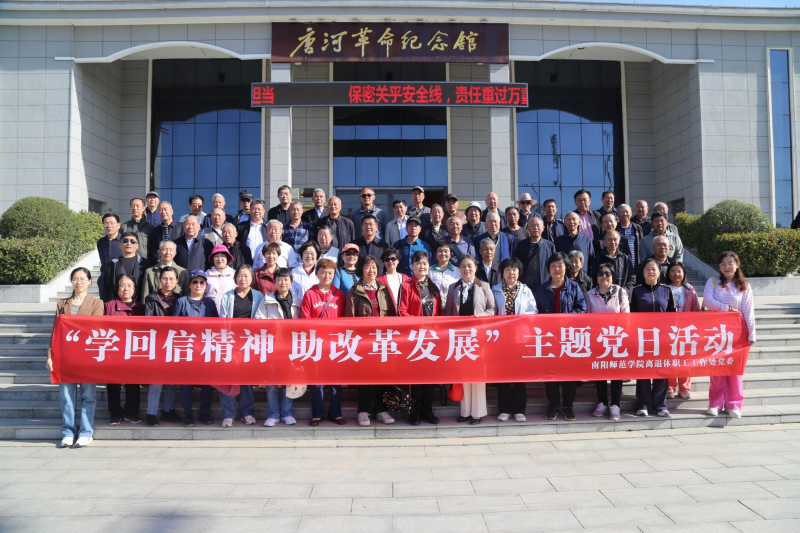 丰富党日活动,锤炼坚定党性。学校关工委深入学习贯彻习近平总书记重要回信精神,落实“豫老有为”品牌建设,组织离退休党员开展“深入学习‘四史’,坚守初心使命”党日活动,赴第一、第二次国内革命战争时期豫西南地区革命斗争的起源地和指挥中心——唐河县开展“学回信精神 助改革发展”主题党日活动,参观“唐河革命纪念馆”,学习红军解放唐河和中共中央中原局、中原军区、中原行署、鄂豫边省委在唐河创建历程,感悟豫西南地区唯一的县级苏维埃政权和南阳第一个社会主义青年团组织、第一个共产党小组、第一个中共地下党县委诞生的辉煌岁月,领略李先念率领新四军五师、王树声率领八路军河南军区部队、王震率领八路军三五九旅南下支队“三军会师唐河”的浓墨重彩。赴平顶山郏县“八路军豫西抗日根据地革命纪念馆”开展“传承红色基因,凝聚奋进力量”主题党日活动,重温中国共产党领导八路军在中原大地浴血奋战的抗战历史。赴湖北襄阳“红九军二十六师革命烈士纪念馆”开展党日活动。赴邓州“编外雷锋团展览馆”开展“向雷锋同志学习,传承弘扬雷锋精神”主题党日活动。参观“南水北调引丹会战指挥部”,学习“勇于担当、无私奉献、艰苦创业、不怕牺牲”的“渠首精神”。