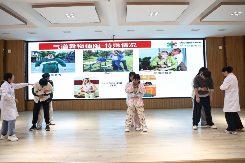 乐春燕结合多年公共卫生服务与工作经验,围绕“心肺复苏”“海姆立克急救法”两块核心内容,通过理论讲解与实操演示相结合的方式,为现场师生带来了一堂生动而实用的急救知识课。