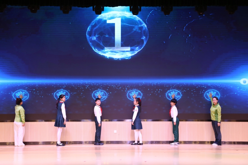 科技节的帷幕在热烈的气氛中正式拉开。开幕式上,学校小水滴合唱团的孩子们在《玉盘》的演唱中将国之重器里的东方智慧与科技温度唱给大家听。六年级学生用创意与表演编织了一场科学追梦,一幕幕的戏剧再现了宋应星、袁隆平的科学人生。学校特色乐器小钟琴表演的《国家》更是诠释了家国相连的温度。当教师代表和学生代表共同为本次科技节按下启动键时,更是将本次开幕式推向了高潮。随后的“科学魔法秀”表演,将深奥的科学原理以奇幻有趣的实验形式呈现,引得现场惊叹连连,瞬间点燃了孩子们对科学的好奇与向往。