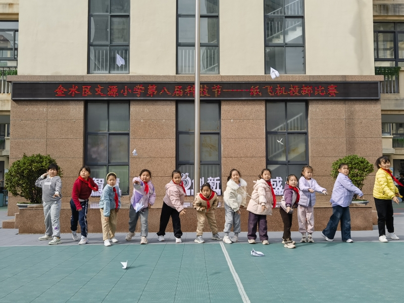 本届科技节精心策划了涵盖体验、竞技、阅读、创作等多个维度的系列活动,确保每位学生都能找到自己的兴趣点。科技成果展上,各年级学生根据科学课上所学的天气、生物、航空航天等知识为灵感进行创作,既实现了知识的活学活用,更加深了对科学课核心知识点的理解与掌握。“科技+”学科融合成果展示区域,汇集了学生将科学与语文、美术、数学等学科知识相融合,同时结合九三阅兵式上机甲战机等创新的作品,充分体现了跨学科学习的成果与魅力。科普阅读分享会上,同学们畅游书海,纷纷分享阅读10月份黄校长推荐科普读物的收获,在交流与感悟中,爱探索、敢提问的科学种子也悄然在同学们的心中埋下。科普观影活动与“感触科学之谜”云端科学课,则利用现代视听技术,带领学生们穿越时空,感受科学的神秘与壮丽。纸飞机投掷比赛现场,同学们化身”小小设计师“,将精心折制的纸飞机用力掷出。一架架小小的纸飞机既承载着同学们的创意与梦想,也让同学们在动手实践中直观感受到了空气动力学原理的魅力。“源梦剧场-未来律动”街舞专场别出心裁地将科技感与艺术表演融合,让街舞的节奏不仅能被听见、看见,更能通过科技化的形式被真切感知,潜移默化地培养学生对艺术与科技的双重兴趣。科学素养评价活动,不仅有效检验了同学们的科学知识积累与探究能力,更以评价为纽带,助力学生培养科学思维习惯,逐步养成以科学视角发现问题、解决问题的能力。