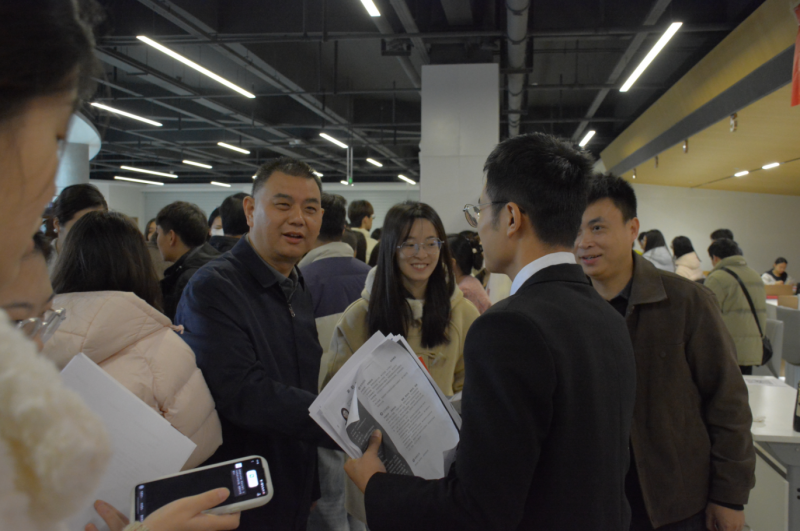 招生就业处处长汤德钱在双选会现场进行调研,详细了解企业用人标准与岗位需求,鼓励毕业生依托专业优势主动对接岗位,将个人成长融入行业发展与社会经济建设大局,为就业工作注入“暖心关怀”。