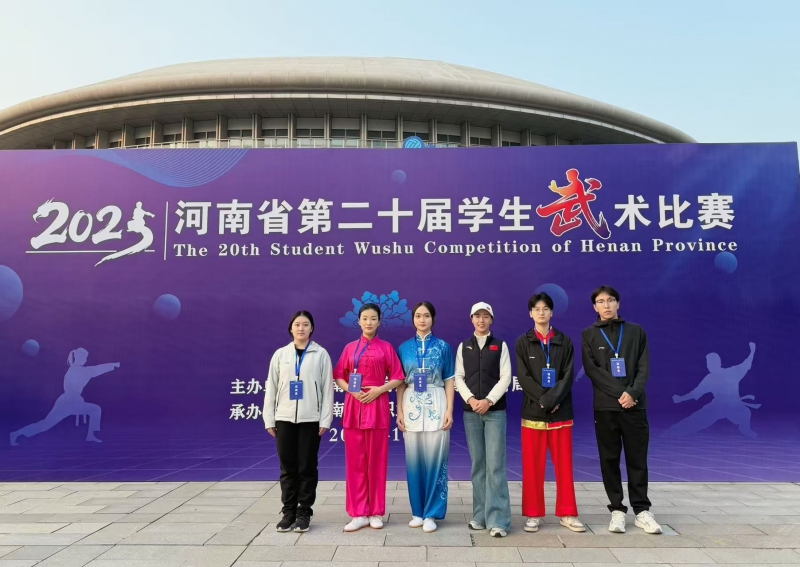 河南医药大学体育学院聂同海、张喆喆两位教师担任教练,率校武术队5名运动员出征。经过四天激烈比拼,成绩喜人:峻极书院学生陈静卓获女子大学本科甲组太极球第一名;麻醉学院学生岳芝萱分获女子大学本科甲组初级剑第四名与少林拳第五名;第一临床学院学生赵珂夺得女子大学本科甲组初级枪第五名;该校代表队在女子大学本科甲组团体总分中位列第七。