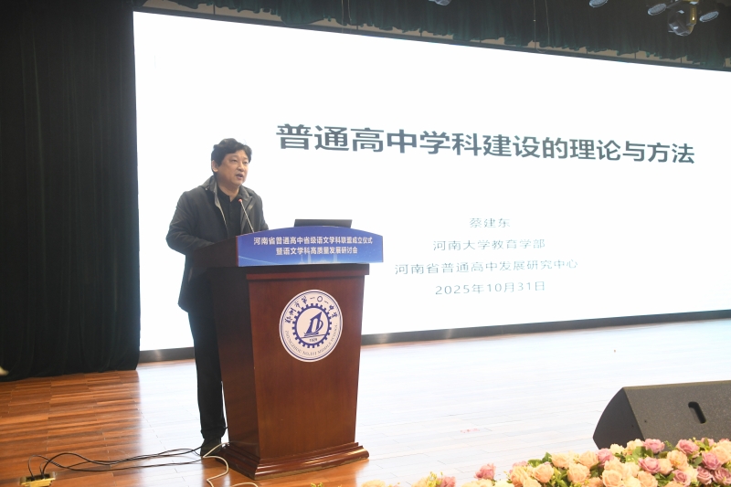 河南大学教育学部党委常务副书记、河南省普通高中发展研究中心主任蔡建东以《普通高中学科建设的理论与方法》为题,深入解读了学科建设的深层逻辑与实践路径。