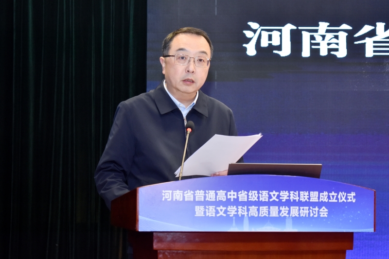 河南省基础课程与教学发展中心党委书记、主任赵阳热烈祝贺联盟成立,他希望联盟能成为教学改革的“试验田”、优质资源的“聚合池”、教师成长的“加油站”,真正成为引领河南高中语文教育高质量发展的“新引擎”。