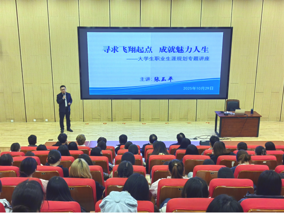 张玉平首先系统介绍了职业规划的核心框架与重要意义,又从自我认知的多元方法、不同行业的现状与未来趋势分析,以及如何设定职业发展路径几个角度深入分析讲解了大学生该如何科学系统地规划职业生涯。讲座中专家用通俗易懂的案例拆解专业知识点,既解答了实际疑问,又提供了新的思考视角,讲座内容丰富有趣,学生专注聆听,现场互动积极热烈。