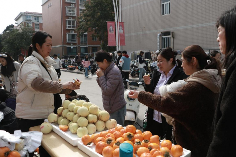 “刚摘的雪桃还带着露水,这就被抢着订了!”10月21日,原阳县九龙泉村果农娄周伟的笑声里满是欢喜——当天,新乡学院以“雪桃飘香促振兴”为主题的帮扶雪桃展销会火热开场,不仅让全校师生尝到了鲜脆甜美的雪桃,更让村里的桃果产业迎来了“丰收又增收”的好光景。周边的居民也特意到校参与助农消费,不少人拎着装满雪桃的袋子笑着说“听说校园里的助农桃新鲜又实惠,特意绕路来支持”,现场摩肩接踵的热闹场面还在邻里间口口相传,让这场校园帮扶活动跳出“围墙”、火爆出圈。