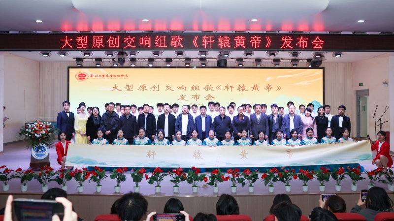 11月3日,郑州工业应用技术学院举行大型原创交响组歌《轩辕黄帝》发布会。新郑市黄帝故里景区党工委书记、管委会主任王淑慧,中国音乐家协会理事、河南省音乐家协会驻会副主席、河南理工大学音乐学院院长李新现,河南师范大学音乐舞蹈学院副院长(主持工作)罗强,河南师范大学音乐舞蹈学院副院长魏波,河南广电教育运营总监徐宁;学校校长闫兵,党委副书记、副校长吴杰霞,副校长贾圣强,工会主席、校长助理高红艳出席发布会;组歌主创团队核心成员许会锋、晁然、赵飞及有关单位负责人、师生代表等参加发布会。发布会由学校音乐与教育学院院长魏熙畅主持。