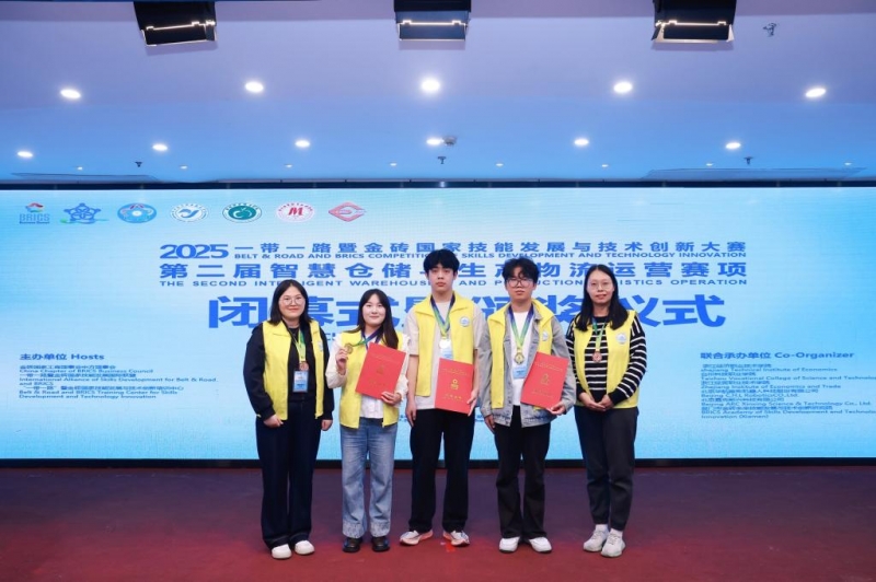 近日,2025年“一带一路”暨金砖国家技能发展与技术创新大赛之第二届智慧仓储与生产物流运营赛项决赛在杭州举办。河南职业技术学院经济管理学院学生参赛团队凭借扎实的专业功底、出色的技术应用能力和稳定的临场发挥,在激烈的角逐中脱颖而出,荣获全国一等奖。
