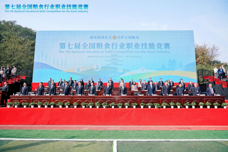 11月4日上午,河南工业贸易职业学院承办的第七届全国粮食行业职业技能竞赛在龙湖校区隆重开幕。国家发展改革委党组成员,国家粮食和物资储备局党组书记、局长刘焕鑫出席开幕式并讲话;河南省副省长李酌,中华全国总工会书记处书记、党组成员张新武出席开幕式并致辞。国家粮食和物资储备局总工程师滕增泰,国家粮食和物资储备局相关司局单位、河南省粮食和物资储备局,各省(区、市)粮食和物资储备局(粮食局)负责同志;中储粮集团、中粮集团、中国供销集团、中国中化有关负责同志;河南省教育厅、河南省总工会、河南省人力资源和社会保障厅和郑州市等部门和单位负责同志出席开幕式。