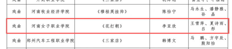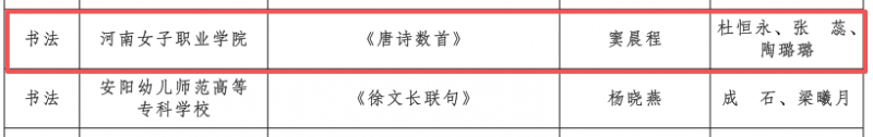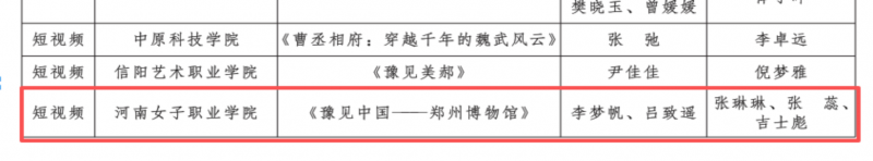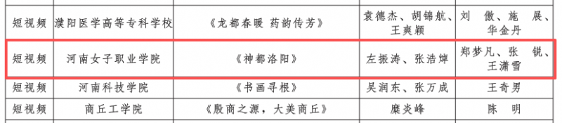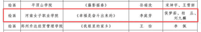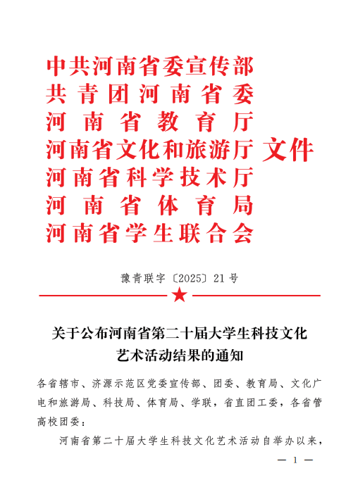 10月17日,中共河南省委宣传部、共青团河南省委、河南省教育厅、河南省文化和旅游厅、河南省科学技术厅、河南省体育局、河南省学生联合会联合印发《关于公布河南省第二十届大学生科技文化艺术活动结果的通知》,河南女子职业学院学子在多个竞赛单元中表现优异,成绩斐然,斩获一等奖5项,二等奖5项,三等奖3项。