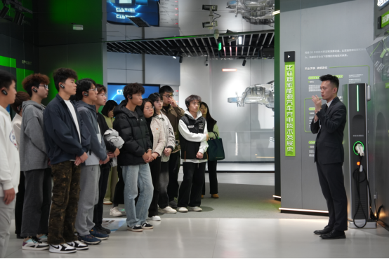 企业讲解员张家俊为同学们系统梳理了比亚迪的奋斗历程,重点介绍了其在绿色低碳与智能制造领域的创新实践,生动展现了这家民族车企的技术崛起之路。