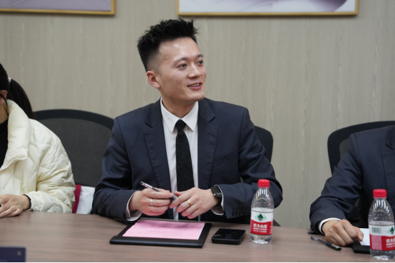 教学研讨会在展馆四楼会议室举行,由河南机电职业学院马克思主义学院院长涂凯迪主持。郑州比亚迪迪梦汽车销售有限公司商务经理王楷铭在致辞中,对三校在思政课教学上的创新探索给予了高度赞赏。在随后的交流环节,与会师生代表踊跃发言,结合参观体验与专业背景,分享了对于“制造强国”与“科技自立自强”的深刻感悟,现场思想交锋热烈,洋溢着浓厚的时代责任感。