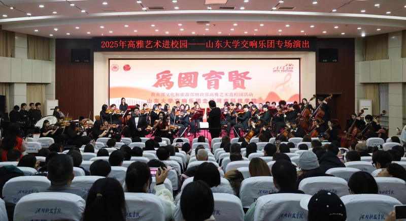 11月8日晚,由教育部、文化和旅游部、财政部主办,山东大学和河南科技学院承办,公共艺术教学部协办的高雅艺术进校园活动之山东大学交响乐团专场音乐会,在学校办公楼308会议室举行。校党委副书记王庆兵出席,相关部门负责人及师生200余人参加。