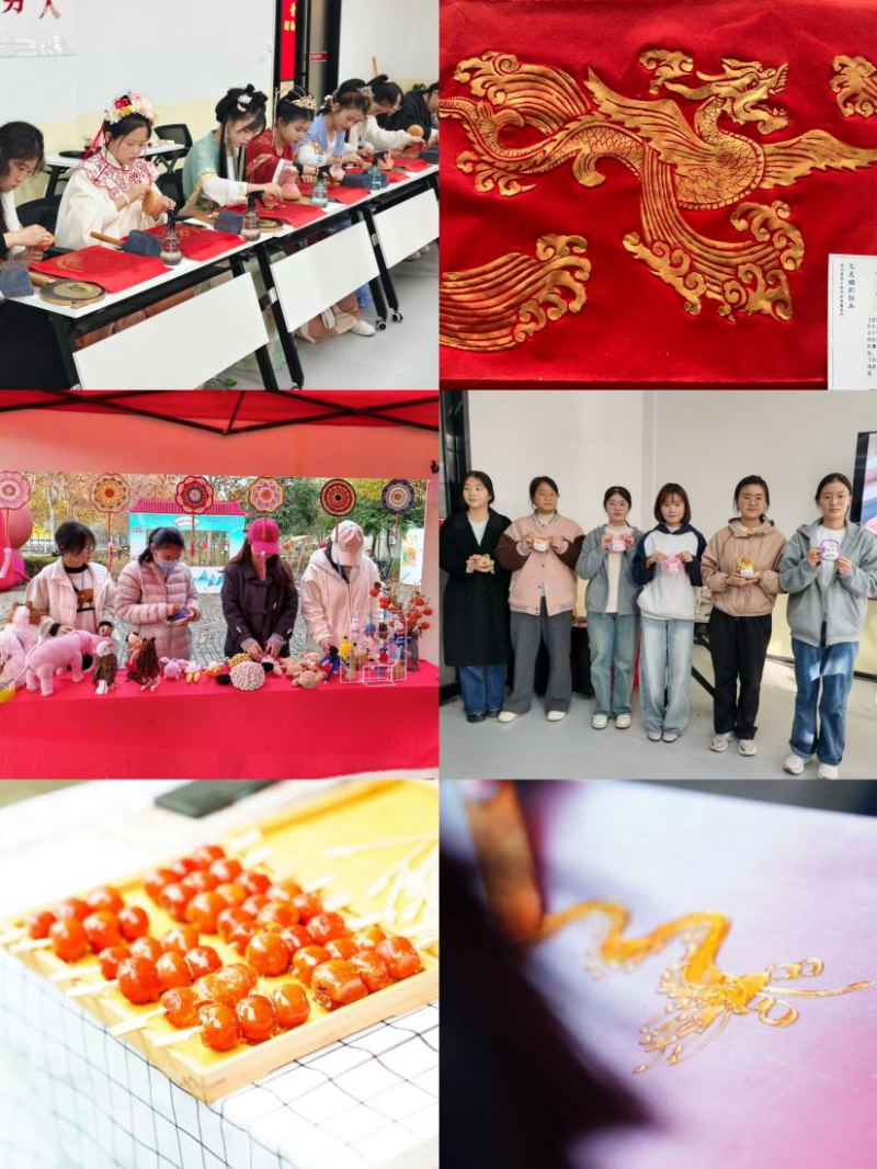 活动邀请我省高浮雕传拓、钩编、糖画和糖葫芦四个非遗项目走进校园,非遗传承人通过现场展示、生动教学、互动体验等形式,为学校师生呈现了一场兼具传统魅力和青春活力的盛宴。高浮雕传拓技艺让参与者亲手拓印历史纹样,触摸文明印记;钩编作品精巧细腻,一针一线间诉说匠心传承;师生在糖画摊前驻足观赏,看非遗传承人以糖为墨、以勺为笔,勾勒出飞禽走兽的灵动形态,活动在沉浸式互动中实现文化启润,让传统之美在校园生根发芽。