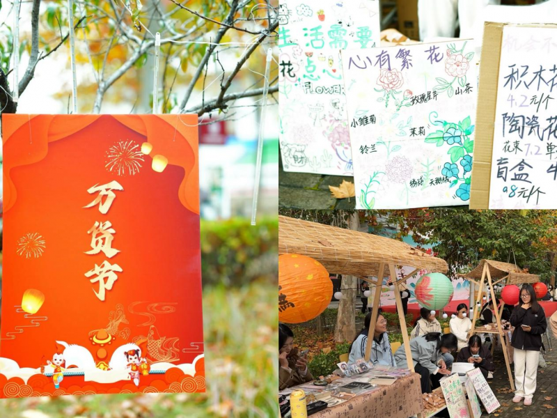 市集里一个个摊位琳琅满目,汇聚了学生手工制作的文创产品,吸引师生驻足观赏、互动选购。摊主们热情讲解背后的文化故事,让传统技艺走出展柜、融入日常。