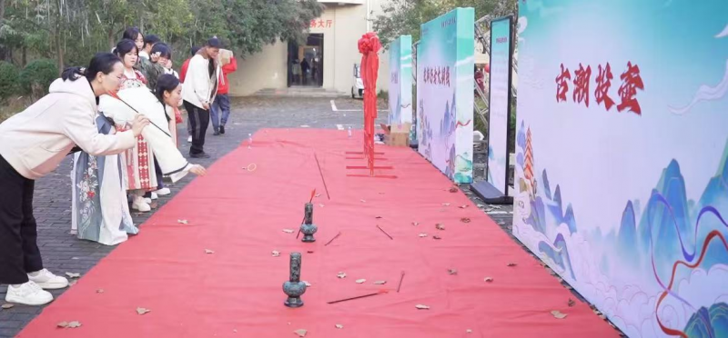 在游戏区,投壶、掷铜钱、套圈等传统游艺项目吸引众多学生参与,现场欢声不断。学生们在轻松愉悦的氛围中感受传统游戏的魅力,体悟古人的生活情趣与智慧,让中华优秀传统文化在新时代焕发蓬勃生机。