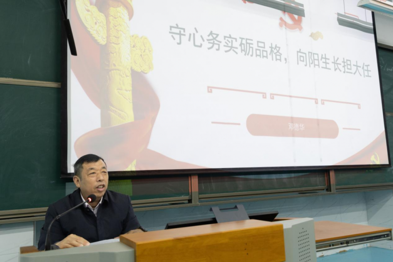 为深入学习宣传贯彻党的二十届四中全会精神,引导广大青年学子准确把握时代脉搏,扣好人生第一粒扣子,11月10日下午,濮阳职业技术学院党委书记邓德华以“守心务实砺品格,向阳生长担大任”为主题,面向部分大一学生讲授专题思政课。学校党政办公室负责人、能源与化学工程学院相关负责同志及马克思主义学院教师代表共同聆听。