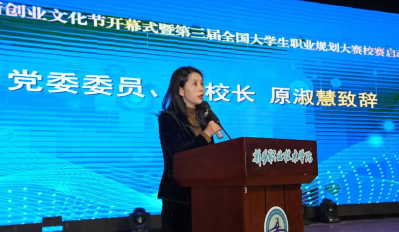 原淑慧在致辞中回顾了学校在创新创业与职业规划赛事中取得的优异成绩。她指出,2025年,学校在第二届全国大学生职业规划大赛中荣获国赛铜奖1项,河南省赛中获职教组成长赛道1金2银、就业赛道1银2铜,教师赛道银奖1项,并成功获批成为第三届全国大学生职业规划大赛河南省职教组成长赛道承办校。在中国国际大学生创新大赛(2025)中,学校斩获国赛铜奖1项,省赛一等奖3项、二等奖7项、三等奖5项。她强调,这些成绩充分表明,创新创业教育是推动学校发展的强大引擎,更是职业教育赋能区域经济、助力学生成长成才的重要路径。