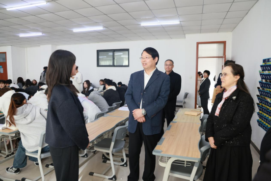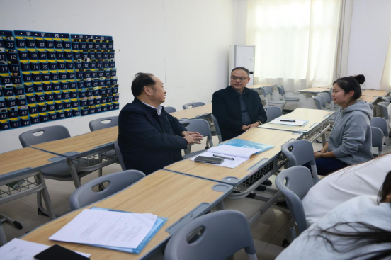 在两节课的教学过程中,校领导凝神听取授课内容,详细记录教学环节设计、案例运用及师生互动情况,密切关注学生的课堂反应和学习效果;课后,与授课教师进行了深入交流,充分肯定了马克思主义学院教师扎实的理论功底,认真的教学态度,能够准确把握课程重点,系统阐释理论知识,展现了良好的专业素养。同时强调,在保持理论系统性的同时,适当结合相关专业领域的具体实际,增强授课内容的针对性。