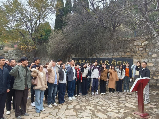 体育教研室主任田洋洋老师说:11月12日,我与师生们一同走进新郑市抗日民主政府旧址,开展实践教学与主题党日活动。驻足旧址的一砖一瓦间,聆听革命先辈的奋斗事迹,仿佛穿越时空感受到了烽火岁月里的赤诚与坚守。随后的登山之行,更让我体会到革命之路的艰辛与今日幸福生活的来之不易。