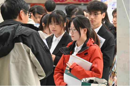 现场按行业与功能科学分区,方便毕业生精准投递简历,同时设有求职指导、生涯咨询、医疗、征兵咨询等服务点位,为参会学生与单位提供全流程保障,确保双选会有序高效。