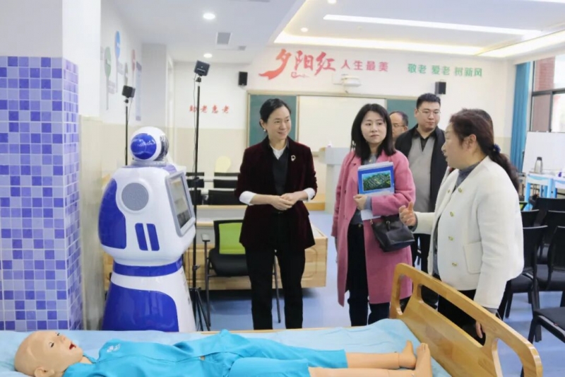 座谈结束后,周旷怡一行实地参观了护理与康养学院的智慧养老实训室。参观过程中,双方围绕实训基地建设、实训课程设计、校企资源整合等关键问题展开热烈探讨,现场交流氛围浓厚,学习收获颇丰,为我校后续实训室升级改造和实践教学提质提供了重要参考。