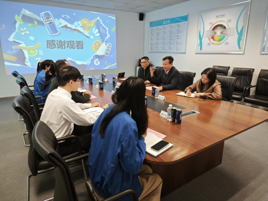 座谈会上,郑州百事饮料有限公司厂长秦尊宇及其他企业代表对我校代表表示了热烈欢迎。接下来,秦尊宇介绍了企业的发展情况,并表示企业高度重视与郑州财经学院的合作关系,非常期待在校园活动、设施投入及就业招聘等方面探索更多合作渠道。