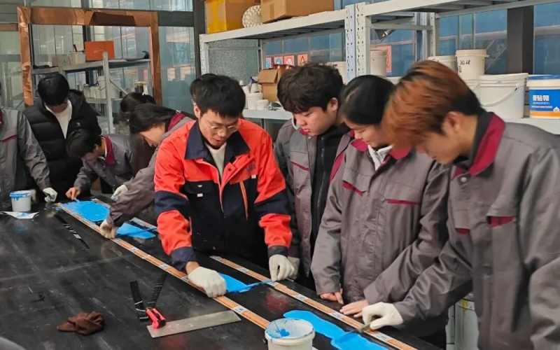 实操技能强化:企业一线技术人员“手把手”教学,带领学生系统学习防水材料的原材料检验、产品配方设计、产品检验检测等核心技能,将校园所学理论知识转化为可落地的动手能力;