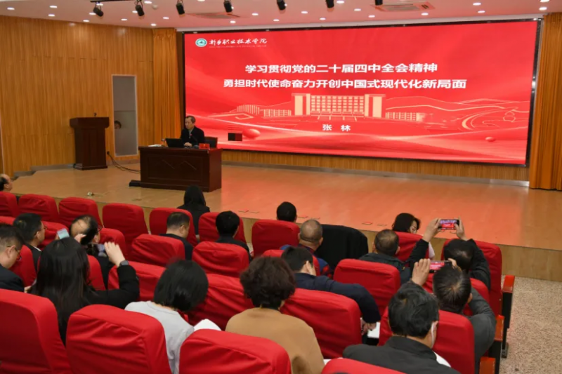 主讲人党委书记张林围绕“学习贯彻党的二十届四中全会精神,勇担时代使命奋力开创中国式现代化新局面”这一主题,为与会人员带来了一场系统全面、内涵丰富的理论宣讲与专题辅导。