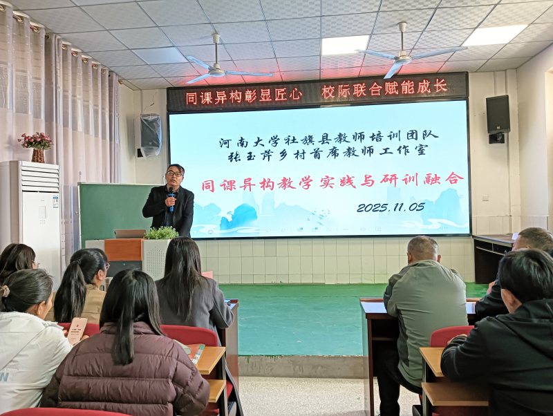 为深化县域教师发展支持服务体系建设项目成果应用,提升区域教师培训辐射效能,河南大学教育学部基础教育研究院(以下简称“研究院”)联合社旗县教育部门及开封市3所优质中学,于11月5日至7日举办“同课异构教学实践与研训融合”专题研训活动。通过跨校协作、课例研磨、专家引领,为50名社旗县教师培训团队学员及开封市三所协同校学科教师搭建了高质量的深度学习与实践平台。研究院副院长刘学军指出:“我们不仅要检验培训成果,更要通过真实课堂场景的碰撞,激发教师对教学本质的深度思考。”此次活动标志着县域教师发展支持服务体系建设项目进入成果转化攻坚阶段。