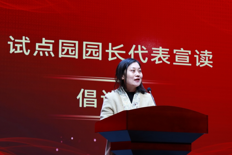 随后,郑州市管城区奇色花福利幼儿园园长梁田田代表试点园宣读《深入推进学前融合教育行动倡议》,呼吁社会各界携手践行融合理念,共筑教育公平防线。在全场倒计时中,与会领导嘉宾共同触摸启动台,正式拉开宣传周序幕。一段 42 秒的回顾短片,重温了河南学前融合教育从探索起步到蓬勃发展的温暖历程。