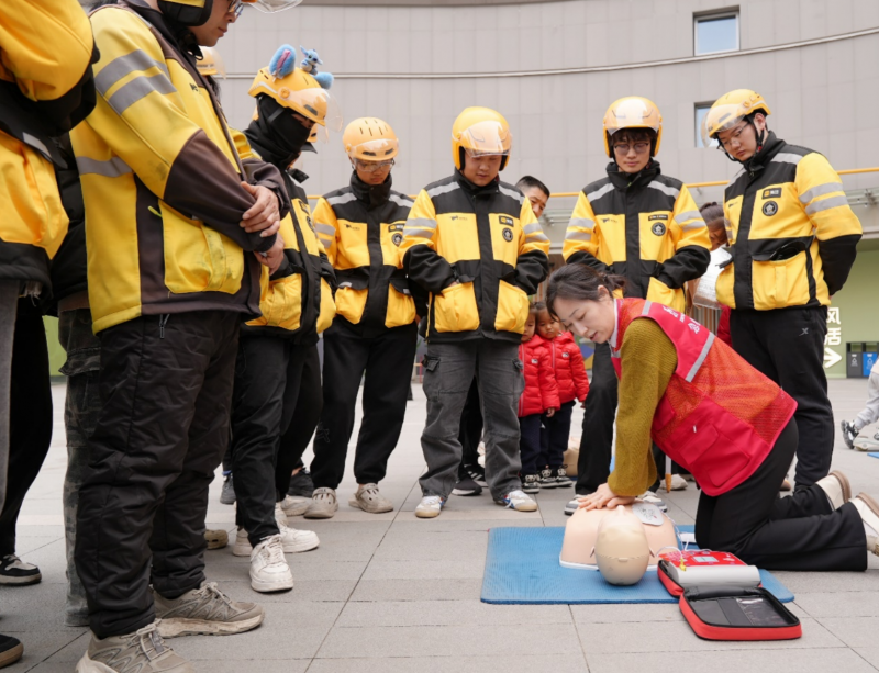 在培训中,郑州健康学院创新采用“站点设赛场、以赛提技能”的模式,在二七区布设 6 个分会场,将培训与竞赛直接 “搬” 到骑手日常工作站点,最大程度降低参与门槛。专业讲师团队扎根一线,摒弃传统说教式教学,结合真实应急案例拆解操作难点 —— 从心肺复苏的按压深度、频率,到 AED 的电极片放置位置,再到海姆立克急救法的冲击角度,讲师们手把手纠正动作偏差,让学员在模拟场景中反复演练,扎实掌握“黄金四分钟”内的施救关键技能。在阶段性考核中,30 名表现突出的学员脱颖而出,晋级最终决赛。
