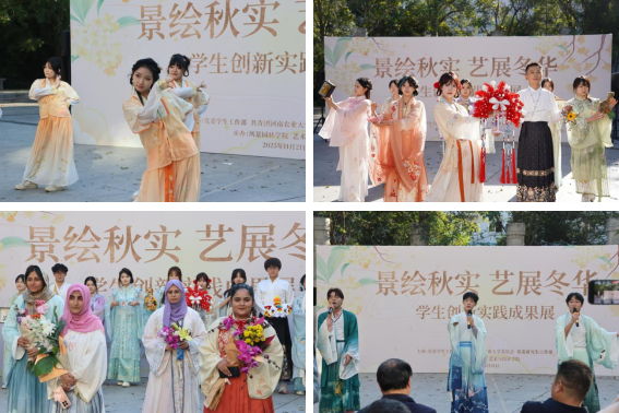 秋意渐浓,露凝寒香。11月21日下午,河南农业大学艺术与设计学院联合风景园林学院在文化路校区举办了“景绘秋实・艺展冬华”学生创新实践成果展。学校相关职能部门负责人及两个院学院负责人、师生代表共赴本次视觉盛宴。本次活动由艺术与设计学院党委书记陈景红主持。