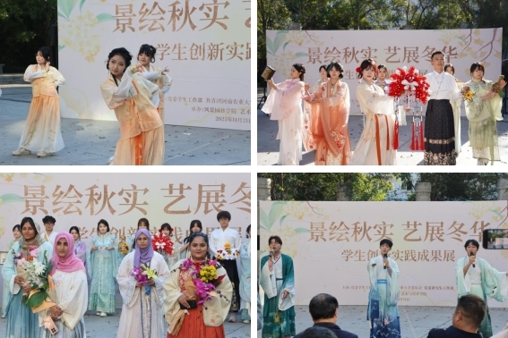 秋意渐浓,露凝寒香。11月21日下午,河南农业大学艺术与设计学院联合风景园林学院在文化路校区举办了“景绘秋实・艺展冬华”学生创新实践成果展。学校相关职能部门负责人及两个院学院负责人、师生代表共赴本次视觉盛宴。本次活动由艺术与设计学院党委书记陈景红主持。