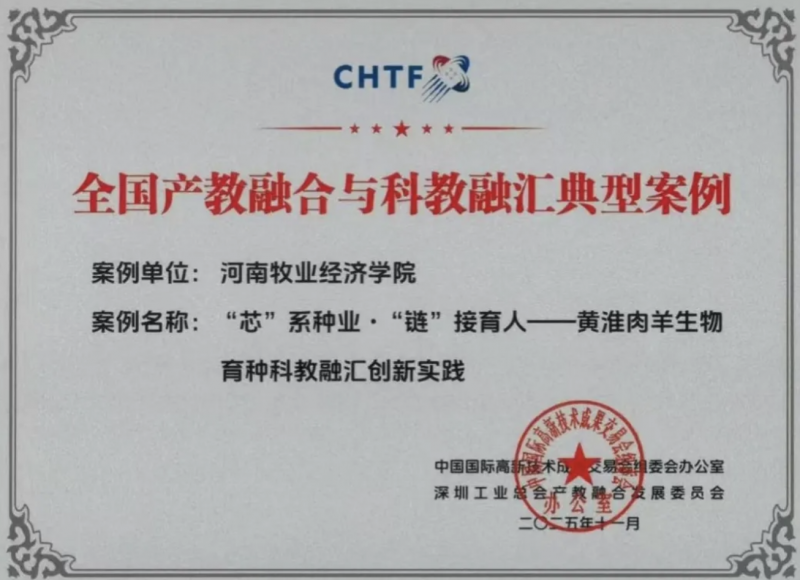 近日,从第二十七届中国国际高新技术成果交易会传来捷报,由河南牧业经济学院动物科技学院申报的《“芯”系种业,“链”接育人——黄淮肉羊生物育种科教融汇创新实践》案例成功入选全国产教融合与科教融汇典型案例。这不仅是学校在国家级平台上的又一次高光亮相,更是学校长期坚持“区域性、行业性、开放型、应用型”办学定位,深化教育教学改革的生动实践与标志性成果