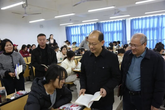 为深入贯彻落实立德树人根本任务,切实加强学校思政课建设,11月26日,郑州卫生健康职业学院党委书记刘畅、校长封银曼带头走进思政课堂,与学生同堂聆听"毛泽东思想和中国特色社会主义理论体系概论""思想道德与法治"两门课程,为思政课教学质量提升和学生成长成才提供指导。校党委宣传部部长、马克思主义学院党总支书记涂俊礼、校办主任刘浩等有关部门负责同志陪同听课。