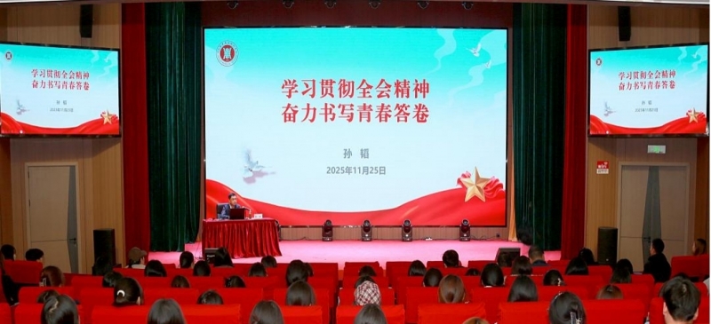 为深入学习贯彻党的二十届四中全会精神,把全校师生的思想和行动统一到全会决策部署上来,11月25日,河南医学高等专科学校校长孙韬以《学习贯彻全会精神 奋力书写青春答卷》为题,向学校师生宣讲党的二十届四中全会精神。宣讲会在公共艺术中心举行,2025级临床医学院、护理学院、康养学院学生代表和教师代表、相关职能部门负责人200余人参加。