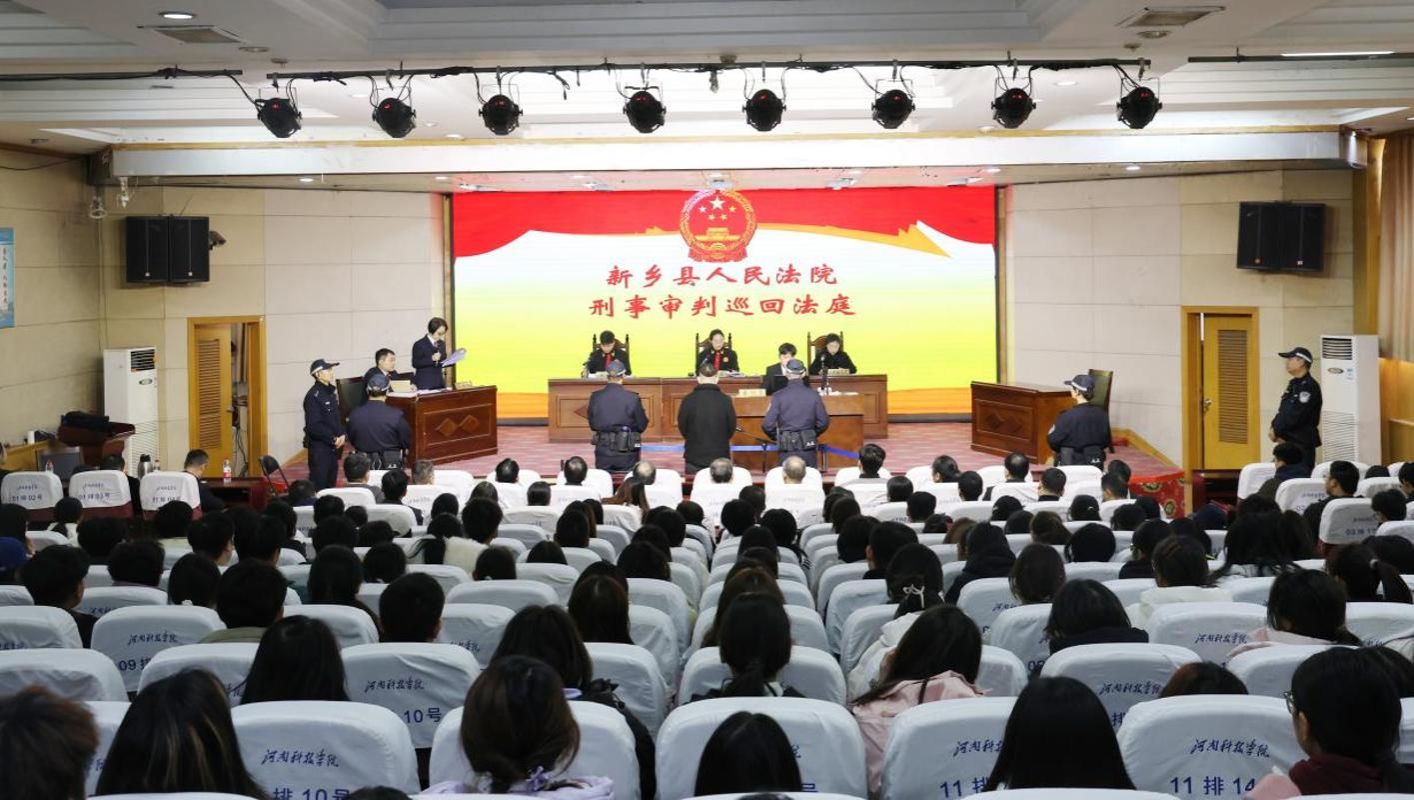 在第十二个“国家宪法日”即将到来之际,为切实强化校园法治教育,提升师生法治素养,11月26日上午,新乡县人民法院刑事审判巡回法庭走进河南科技学院,在学校博闻楼报告厅公开开庭审理一起涉及诈骗罪及掩饰、隐瞒犯罪所得罪的案件。学校党委副书记王庆兵,学校部分职能部门负责人,以及各学院师生代表等300余人现场旁听庭审。