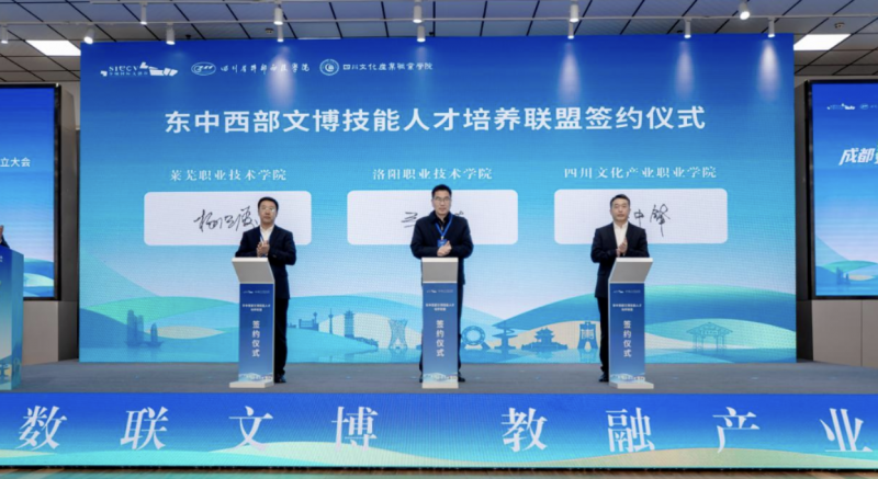 11月26日,由洛阳职业技术学院联合四川文化产业职业学院、莱芜职业技术学院发起成立的“东中西部文博技能人才培养联盟”在四川文化产业职业学院正式揭牌,成为全国首个贯通东中西部的文博类职业教育协作平台。洛阳职业技术学院副校长张志友出席揭牌仪式并现场签约。