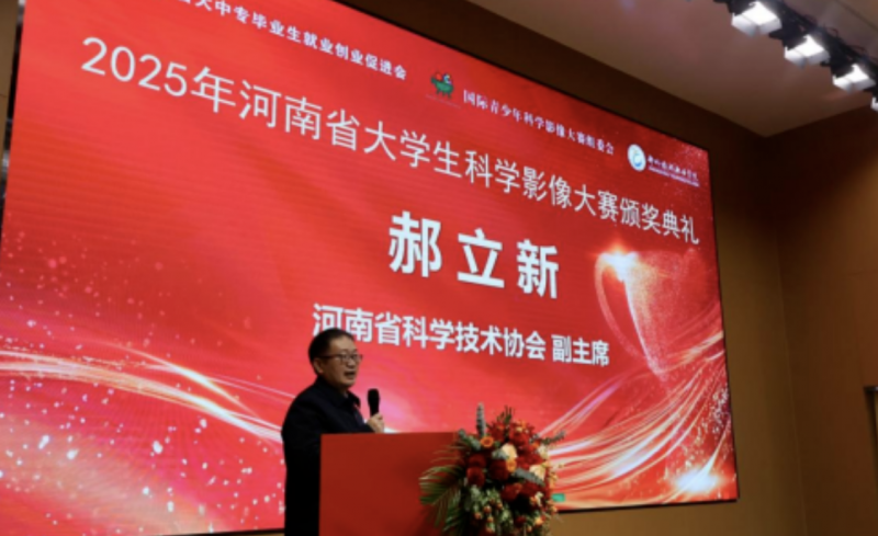 11月28日上午,由河南省大中专毕业生就业创业促进会、国际青少年科学影像大赛组委会联合主办,郑州旅游职业学院承办的2025河南省大学生科学影像大赛颁奖典礼在2号教学二楼B座报告厅隆重举行。省科协党组成员、副主席郝立新、河南省人大制度理论研究会副会长李经超、国际青少年科学影像大赛组委会主席姜东梅博士等嘉宾,学校党委书记王艳红、校长肖世才、纪委书记莫方勇与获奖师生代表、行业专家齐聚一堂,共同见证这场以光影为桥、串联科普、创新与就业的青春盛会。颁奖典礼由河南省大中专毕业生就业创业促进会会长岳修峰主持。