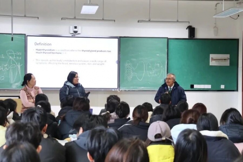 座谈会后,代表团一行深入中外合作班课堂,观摩了现场教学,与授课教师围绕教学设计、中外课程融合等话题展开互动交流。随后,代表团一行先后参观了护理实验室、中医药文化馆、人体生命科学馆,详细了解学校实训教学体系、中医药文化传承、医学科普教育等方面的建设成果,对学校在中医药文化保护与传承方面的成效表示赞赏,双方围绕生命科学科普合作、实践教学创新、实训资源共享等达成初步合作意向。