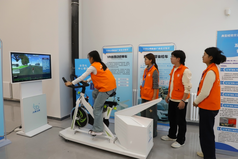 宣传周期间,学校创新设置科技体验活动,引入AI情绪识别系统、AI心理健康亭、VR动感单车、多维智能击打宣泄设备等一系列融合人工智能与心理学的智能设备。AI情绪识别技术通过精准分析面部微表情,帮助个体更好地感知情绪变化;AI心理健康亭提供了私密、便捷的即时心理支持入口;而沉浸式的VR动感单车和智能击打宣泄设备,则让参与者在互动中有效释放压力、调节情绪。现场气氛热烈,互动踊跃,欢声笑语不断,以沉浸式体验展现“科技+心理”融合新路径。
