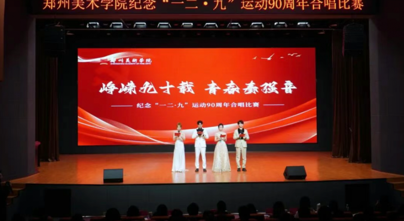 12月4日,郑州美术学院纪念“一二·九”运动90周年合唱比赛在图书馆报告厅隆重举行。全校师生以歌声为笔、以旋律为墨,在经典传唱中回望峥嵘岁月,在激昂乐章里续写青春华章,用美术学子特有的赤诚与担当,致敬那段永不褪色的革命记忆。