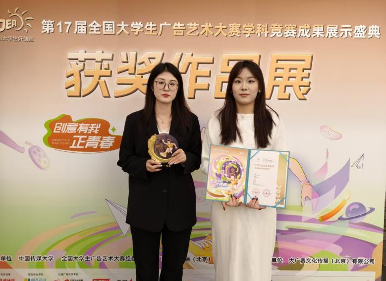 12月6日,第17届全国大学生广告艺术大赛颁奖盛典在北京全国政协礼堂举行。河南财政金融学院艺术设计学院梁潇老师指导的苏煜琪同学的作品《国风养元清洗发水》获一等奖,刘玄老师指导的秦书蓉同学作品 《绽色·绽我》获传奇今生企业特别奖(全省首席校园推荐官)。