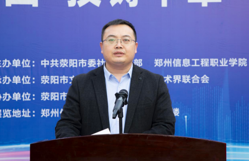 开幕式上,学校王伟超副书记向到场的来宾及相关单位致谢,并简要介绍了学校的办学成果,感谢荥阳各方支持,强调了学校与地方发展同频,此次展览是美育融入职教的实践,同时寄语师生传承工匠精神,共担时代使命,助力国家发展。